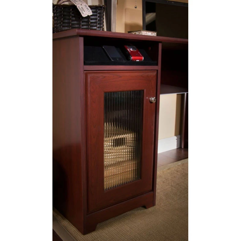 * Concealed storage cabinet in L Shaped Desk features stylish fluted glass door