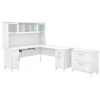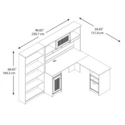 Bush Cabot Collection L-Shaped Desk Package Harvest Cherry – CAB011HVC. Work in style with the Bush Furniture Cabot L Shaped Desk with Hutch and 5 Shelf Bookcase. Enjoy a beautiful traditional look with smart features for your convenience. Available in Espresso Oak, Harvest Cherry or Heather Gray, the beautiful office set features Chrome-finished hardware for a simple, elegant and timeless appearance.Â