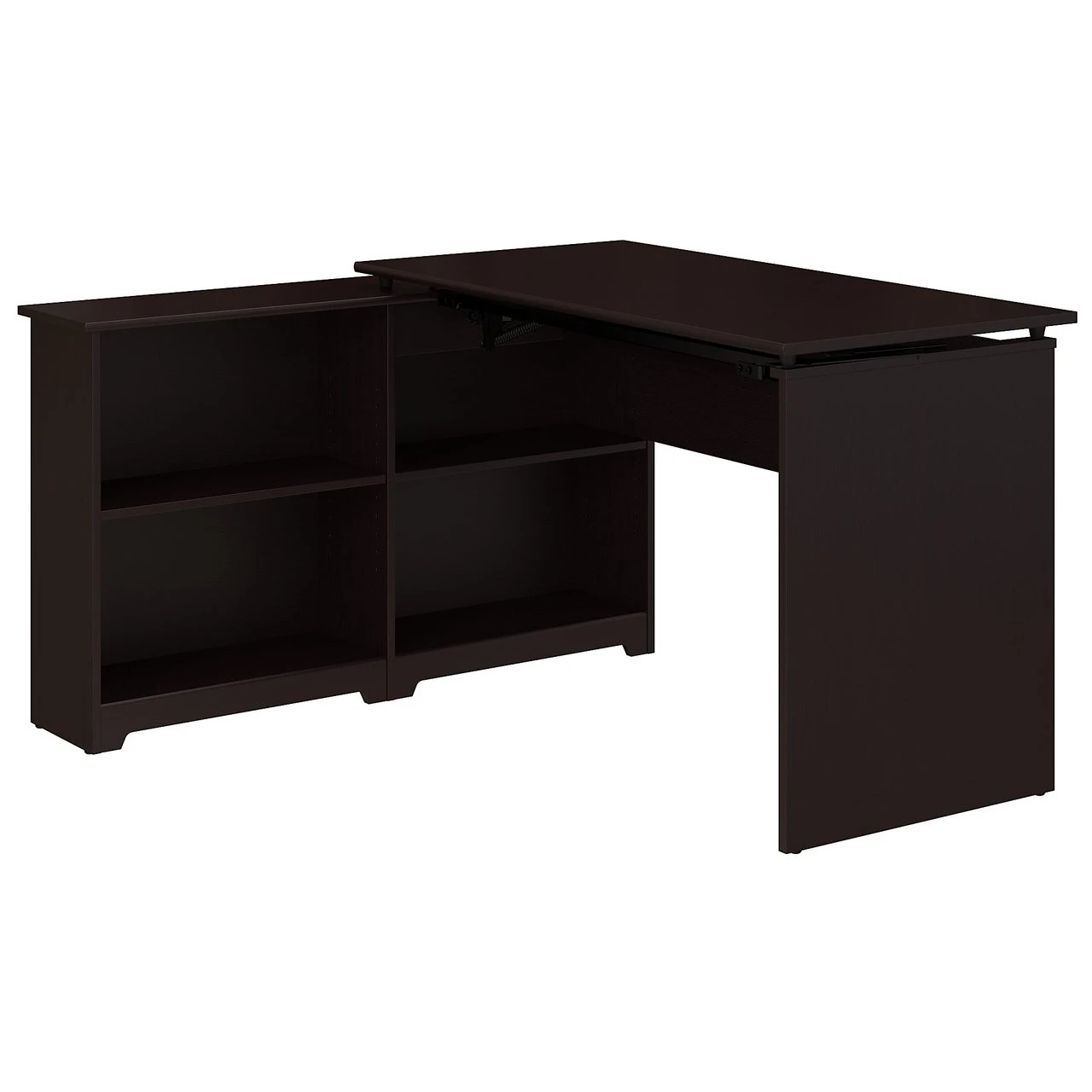 Bush Cabot Sit to Stand Desk 52″W 3 Position Espresso Oak – WC31816-03. Simple, elegant styling, ample storage and smart technology integration features make Cabot a perfect fit for the home office.