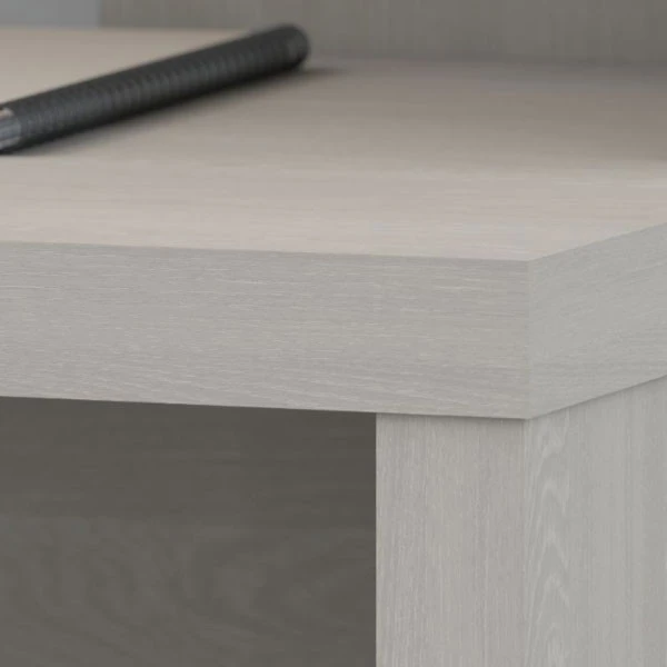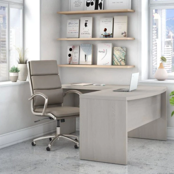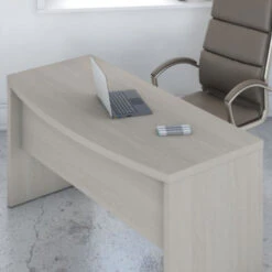 Bush Echo Bow Front Desk with 36″ Return 60″ – ECH025GS. The Office by Kathy Ireland Echo creates a strong presence perfect for those whose passion for business is only matched by their fashionable tastes. Blending a Pure White finish with appealing wide lines, the contemporary furniture inspires and gives a residential feel to the modern workspace.