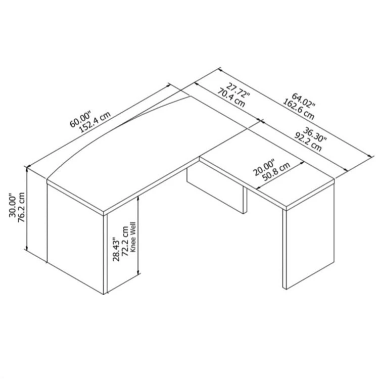 Bush Echo Bow Front Desk with 36″ Return 60″ – ECH025PW. The Office by Kathy Ireland Echo creates a strong presence perfect for those whose passion for business is only matched by their fashionable tastes. Blending a Pure White finish with appealing wide lines, the contemporary furniture inspires and gives a residential feel to the modern workspace.