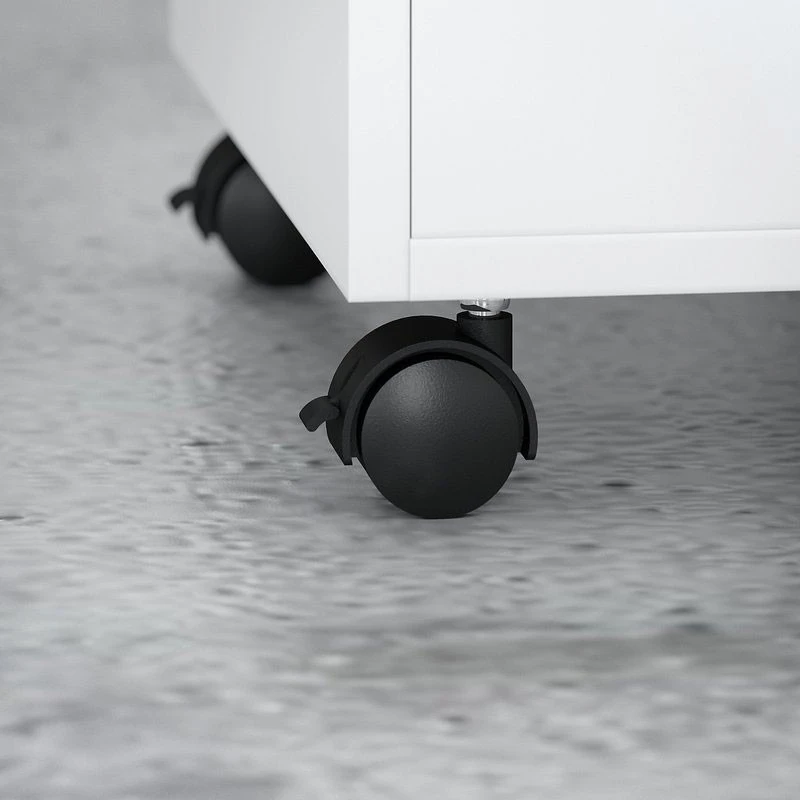 *Contemporary Cabinet moves on dual-wheeled, hooded casters: 2 swivel, 2 fixed and locking