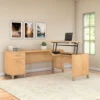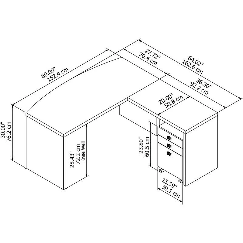 Bush Echo Bow Front Desk with 36″ Return and 3-Drawer Mobile Pedestal 60″ – ECH007PW. The Office by Kathy Ireland Echo creates a strong presence perfect for those whose passion for business is only matched by their fashionable tastes. Blending a Pure White finish with appealing wide lines, the contemporary furniture inspires and gives a residential feel to the modern workspace.