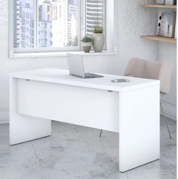 Bush Echo Credenza Desk 60″ – KI60106-03. The Office by Kathy Ireland Echo Credenza Desk offers an elegant, functional design to inspire today’s professional. Wide lines and a thick surface create a strong presence while a thermally fused laminate finish protects the white Desk throughout years of daily use.