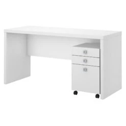 Bush Echo Credenza/Desk with 3-Drawer Mobile Pedestal 60″ – ECH003PW. The Office by Kathy Ireland Echo Credenza Desk offers an elegant, functional design to inspire today’s professional. Wide lines and a thick surface create a strong presence while a thermally fused laminate finish protects the white Desk throughout years of daily use.