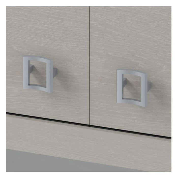 *Â Pure White finish and Satin Silver hardware create a contemporary charm