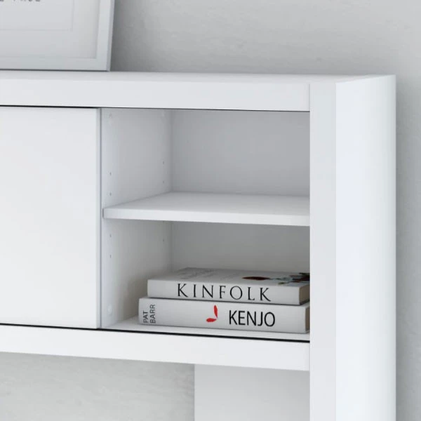 Sliding Hutch doors provide flexible concealed storage in the center or on each end
