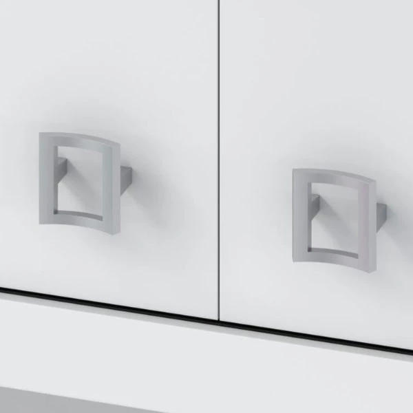 Pure White finish and Satin Silver hardware create a contemporary charm