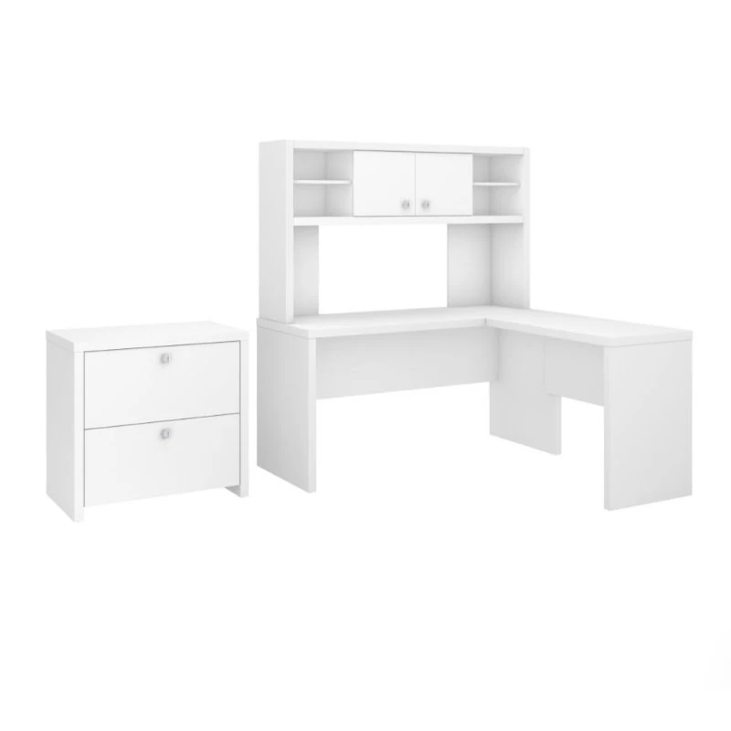 White office furniture set includes 60W Credenza Desk, Hutch, 36W Return and 2 Drawer Lateral File Cabinet