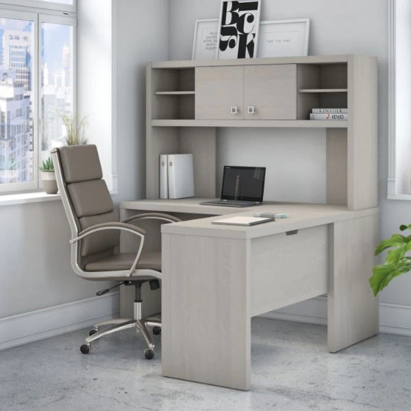Bush Echo Bow Front Desk with 36″ Return and 3-Drawer Mobile Pedestal 60″ – ECH007GS. The Office by Kathy Ireland Echo creates a strong presence perfect for those whose passion for business is only matched by their fashionable tastes. Blending a Pure White finish with appealing wide lines, the contemporary furniture inspires and gives a residential feel to the modern workspace.