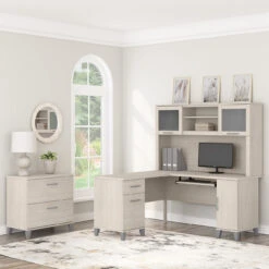 *Â Bundle includes: 60W L Shaped Desk with Storage, 60W Desk Hutch, 2 Drawer Lateral File Cabinet