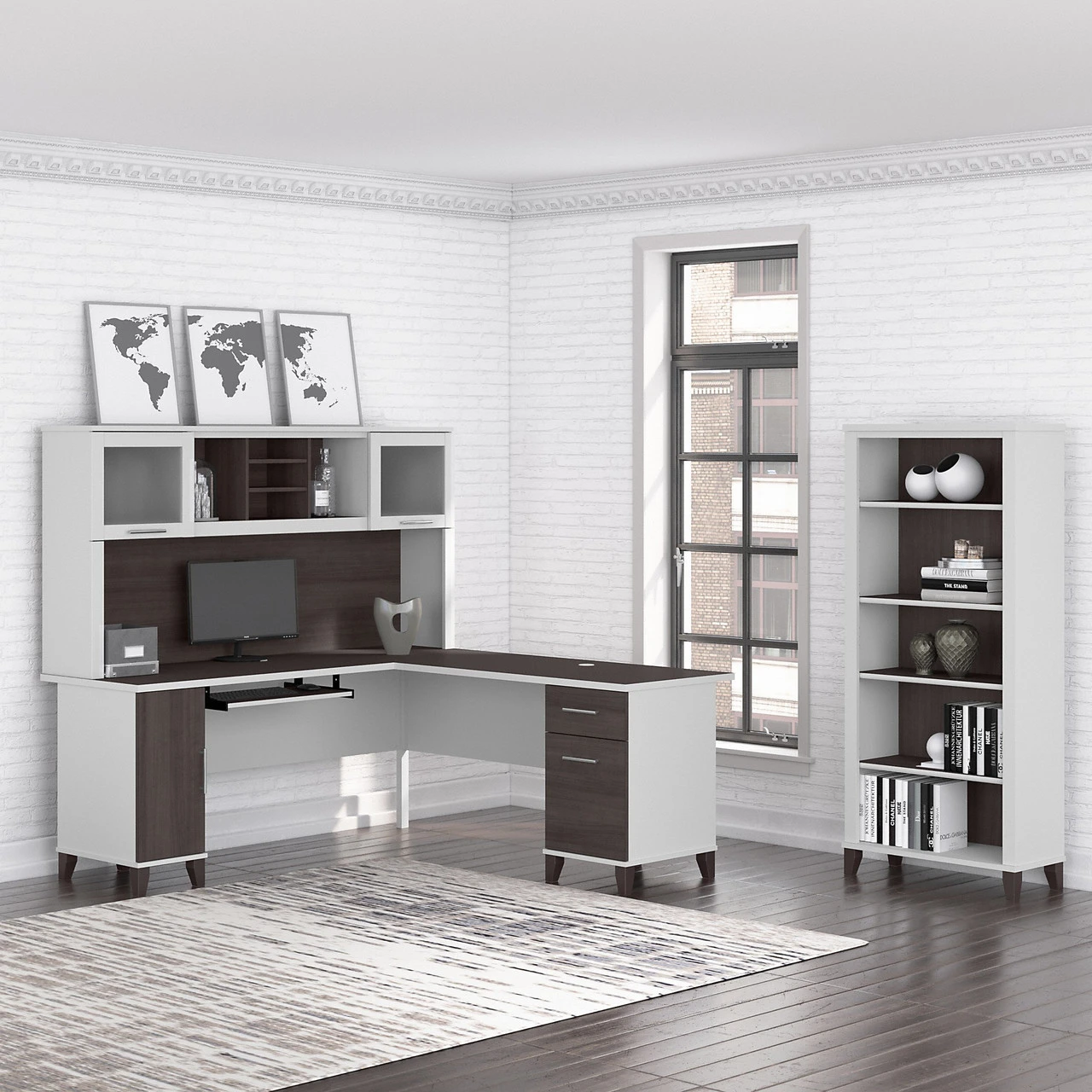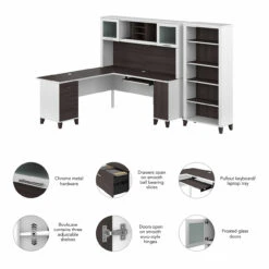 Bush Furniture 72W L Desk w Hutch and Bookcase – SET011SGWH