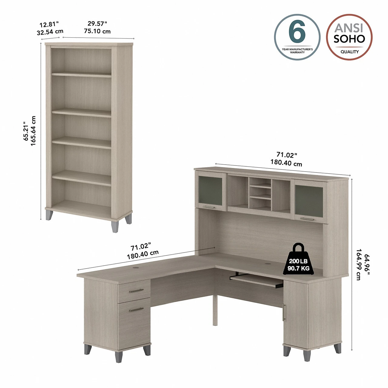 Bush Furniture 72W L Desk w Hutch and Bookcase -SET011SO