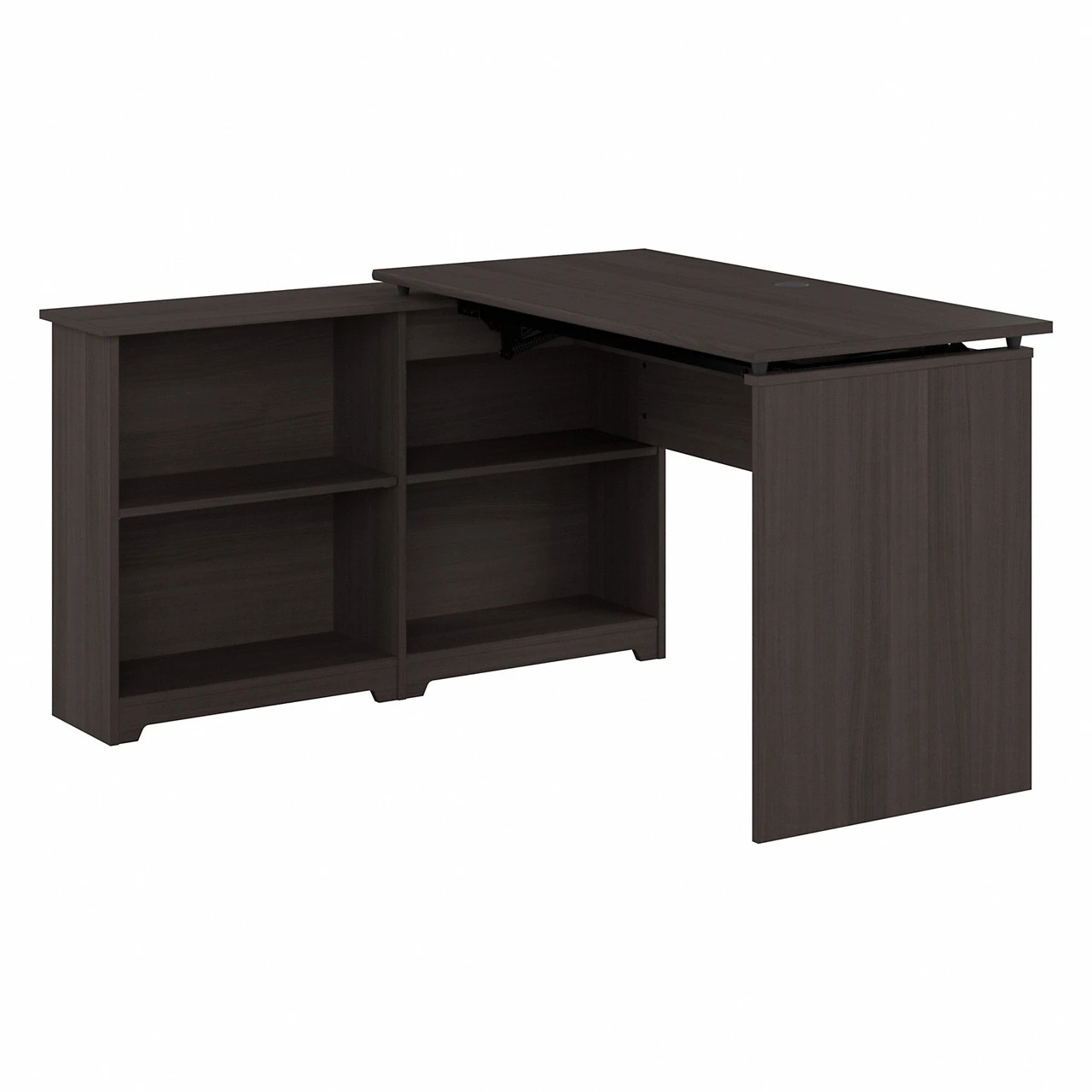 Bush Furniture Cabot 52W 3 Position Sit to Stand Corner Desk with Shelves Heather Gray – WC31716