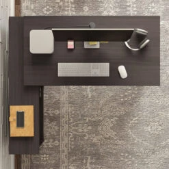 *Â Monitor arm (not included) can be installed in the bookshelf desk’s wire management grommets
