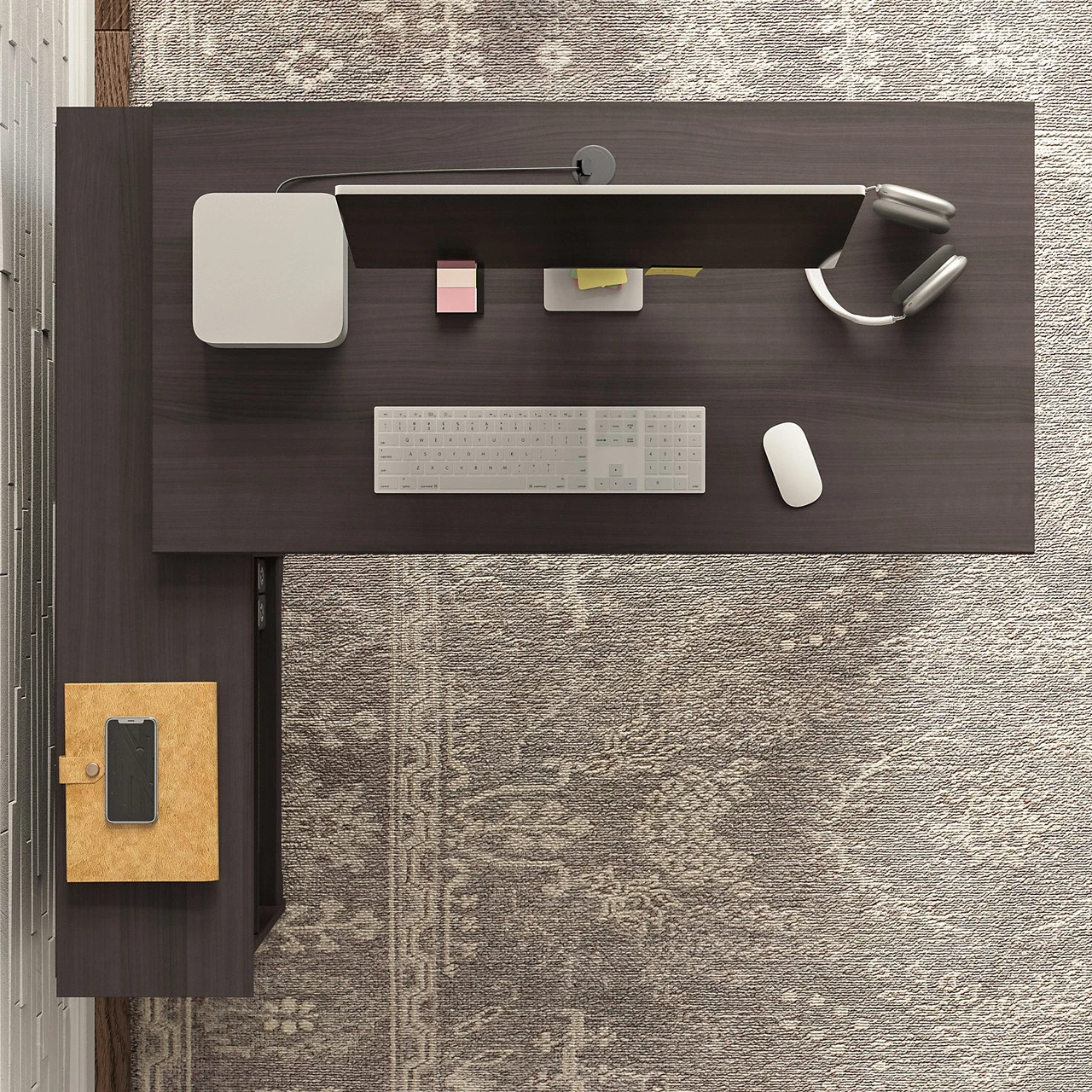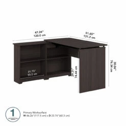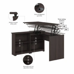 *Â 52W x 47D x 30H 3 Position Sit to Stand Corner Desk boasts transitional styling that suits a variety of home offices