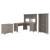 Bush Furniture Cabot Collection 60W 3 Position Sit to Stand L Shaped Desk with Hutch Harvest Cherry – CAB045HVC