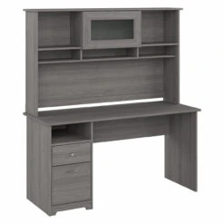 Bush Furniture Cabot Collection 60W 3 Position Sit to Stand L Shaped Desk with Hutch Modern Gray – CAB042MG