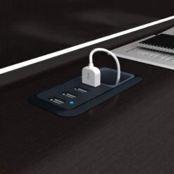 * Hutch has open cubby shelves for work-in-process, large spaces for displaying books or knickknacks, and a wire management system for organizing cables