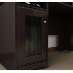 * Concealed storage cabinet on Desk features stylish fluted glass door