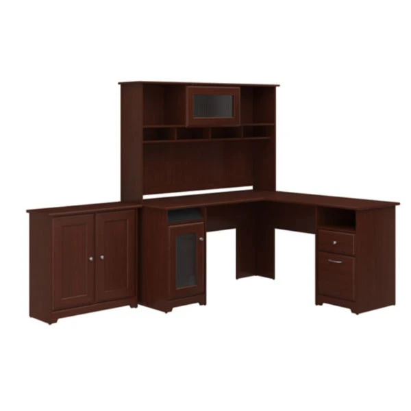 Bush Furniture Cabot Collection 60W L Shaped Computer Desk with Hutch and Small Storage Cabinet Harvest Cherry – CAB016HVC.
