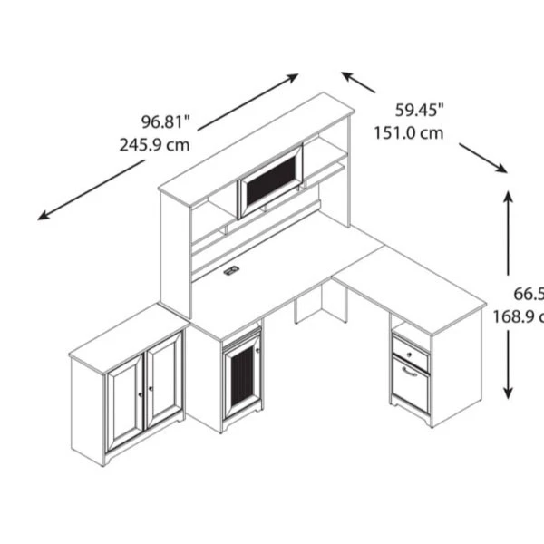 * Bundle includes: 60W L Shaped Computer Desk, 60W Hutch, Small Storage Cabinet with Doors