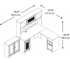 * 60W L Shaped Computer Desk, 60W Hutch, Small Storage Cabinet with Doors