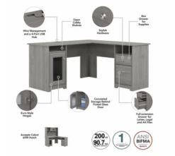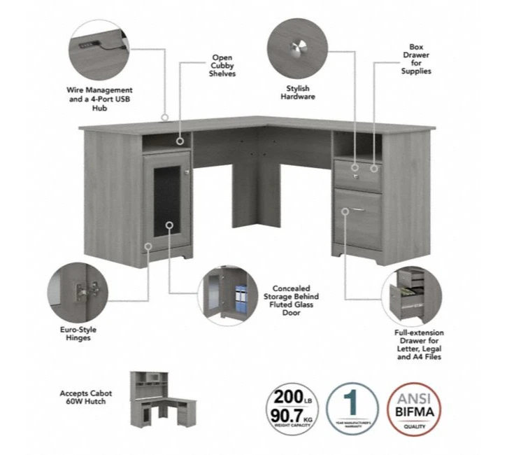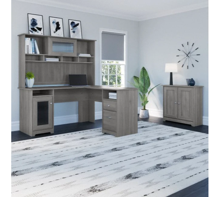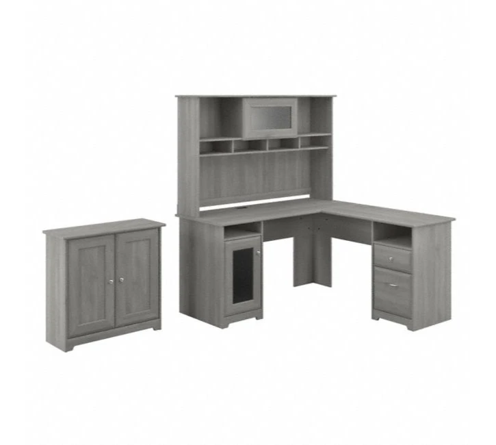 Bush Furniture Cabot Collection 60W L Shaped Computer Desk with Hutch and Small Storage Cabinet Modern Gray – CAB016MGÂ