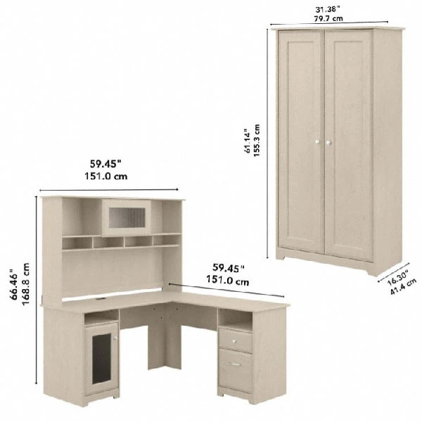 * Bundle includes: 60W L Shaped Computer Desk, 60W Hutch, Tall Storage Cabinet with Doors