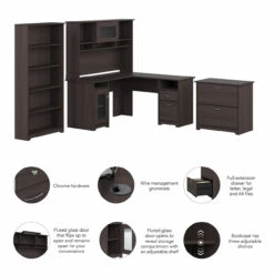 Bush Furniture Cabot Collection 60W L Shaped Computer Desk with Hutch, File Cabinet and Bookcase Heather Gray – CAB010HRG