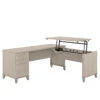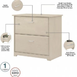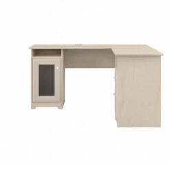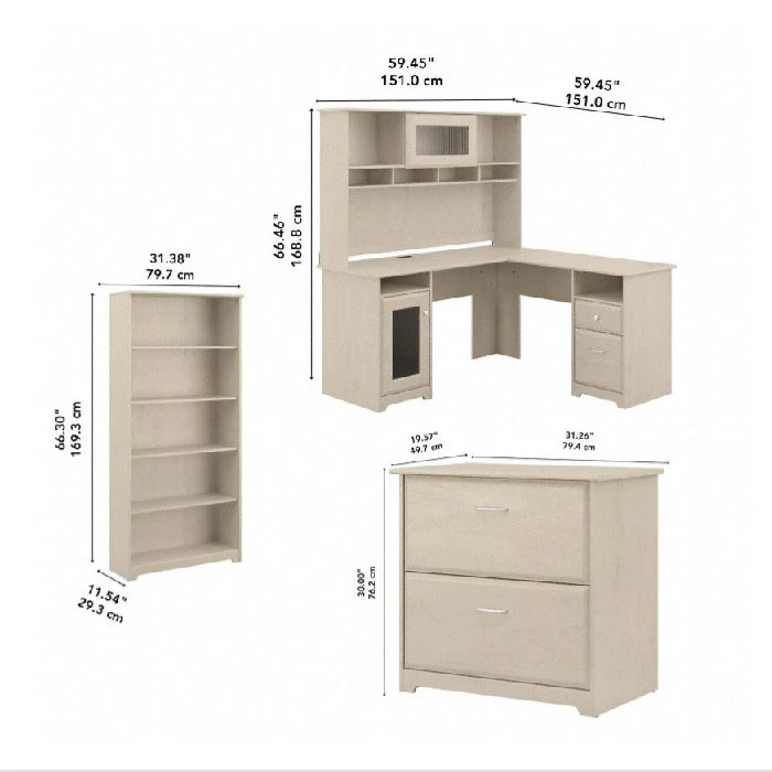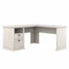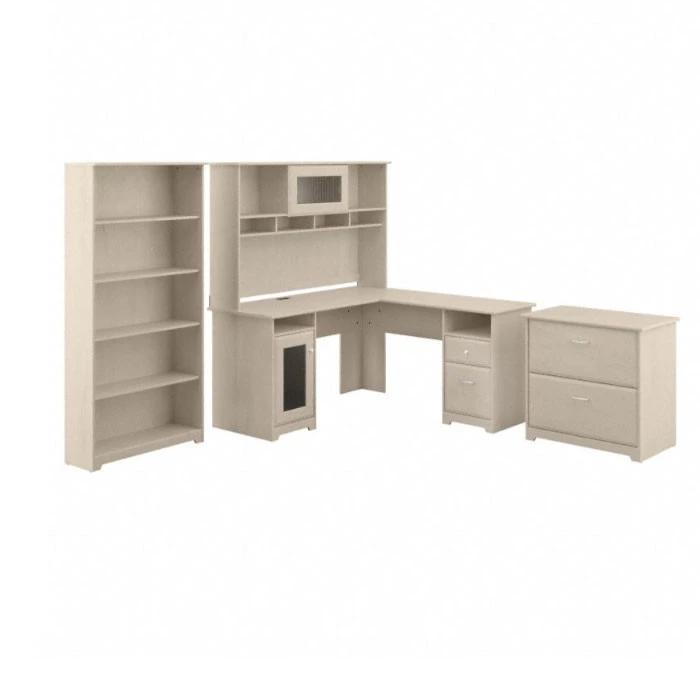 Bush Furniture Cabot Collection 60W L Shaped Computer Desk with Hutch, File Cabinet and Bookcase Linen White Oak – CAB010LW