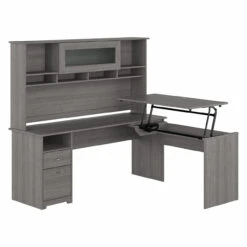Bush Furniture Cabot 72W 3 Position Sit to Stand L Shaped Desk with Hutch Modern Gray – CAB052MG