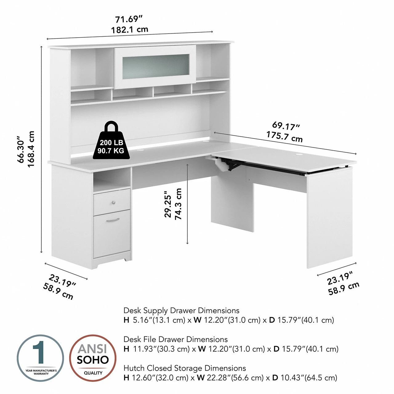 Bush Furniture Cabot 72W 3 Position Sit to Stand L Shaped Desk with Hutch White – CAB052WHN