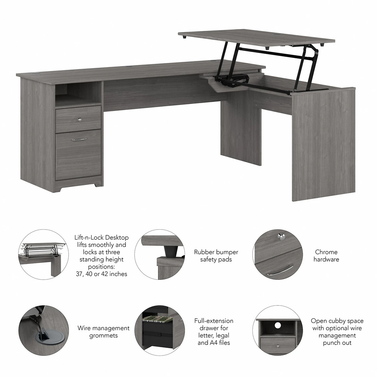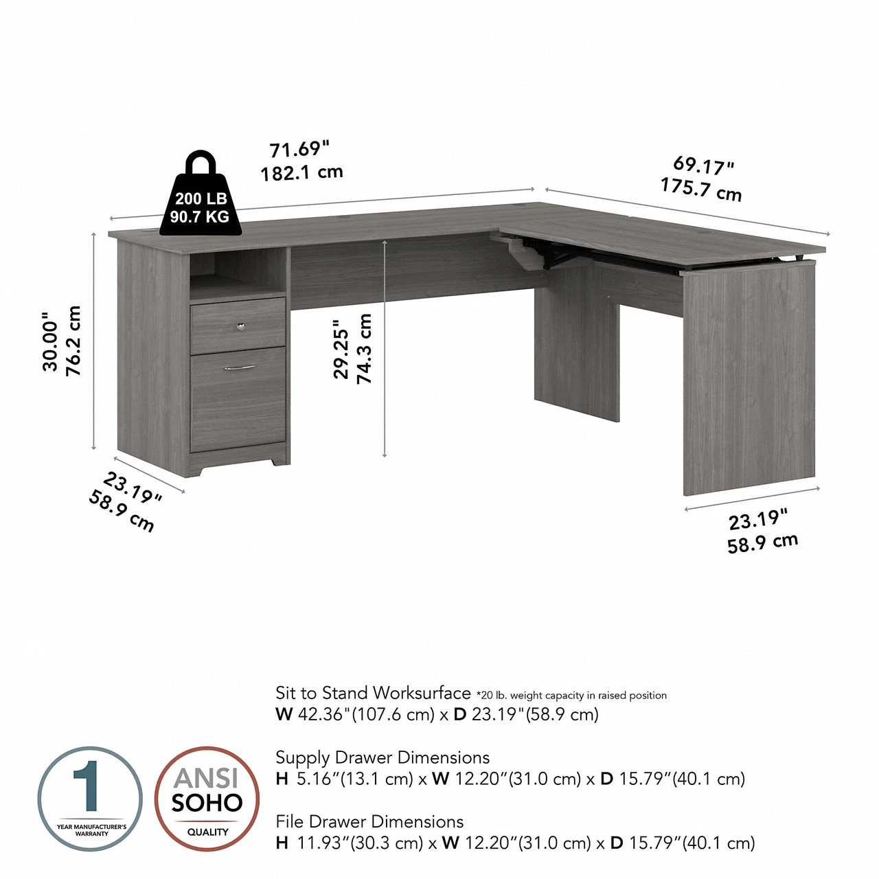 Bush Furniture Cabot Collection 72W L Shaped 3 Position Sit to Stand Desk Modern Gray – CAB050MG