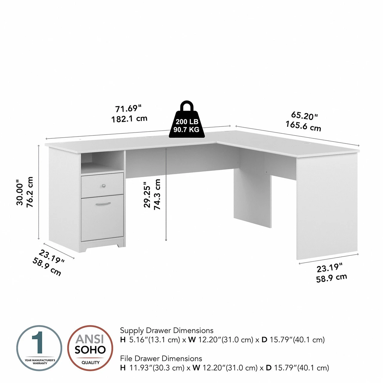 Bush Furniture Cabot Collection 72W L Shaped Computer Desk with Drawers White – CAB051WHN