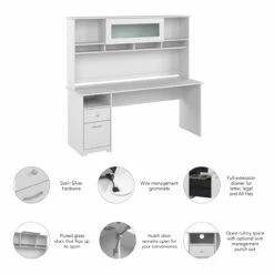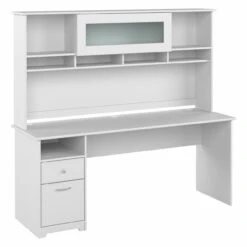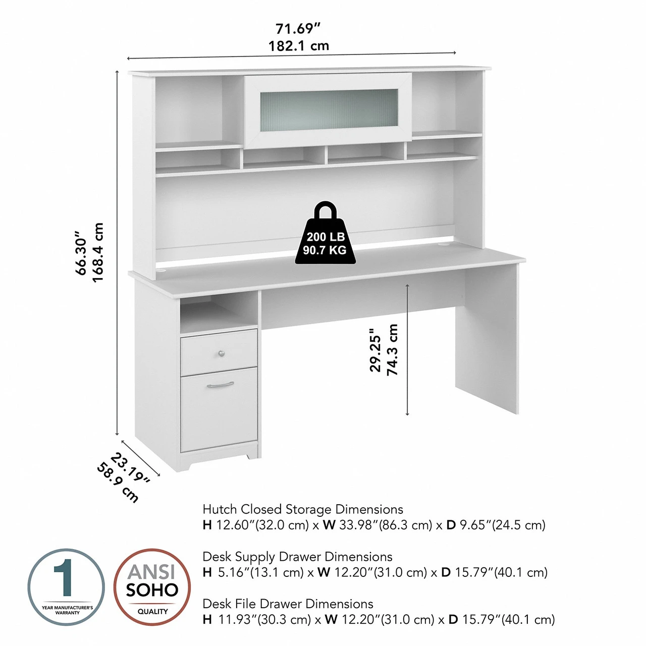 Bush Furniture Cabot Collection 72W Single Pedestal Desk and Hutch White – CAB049WHN