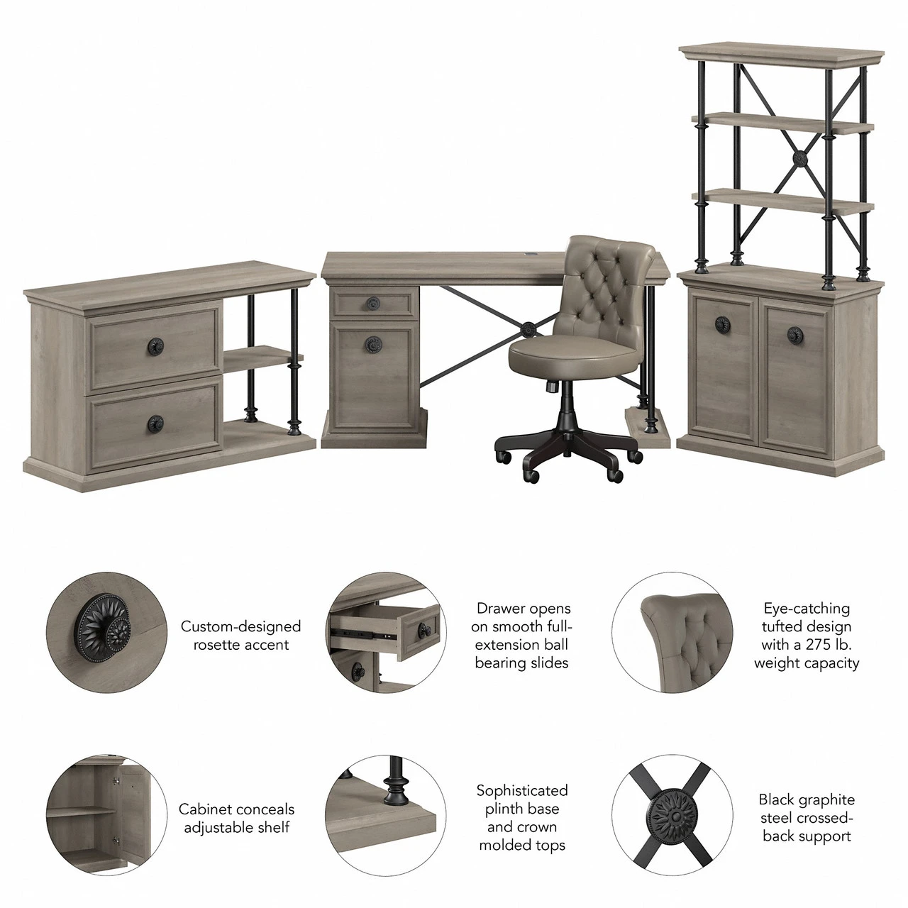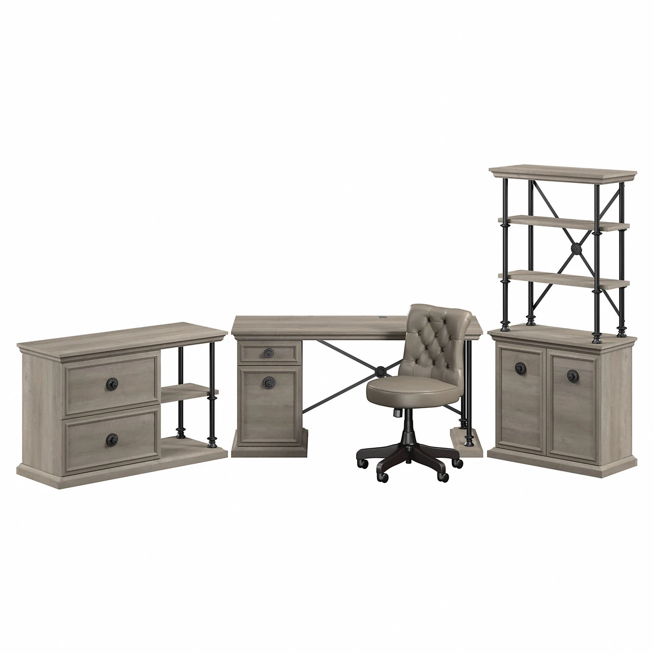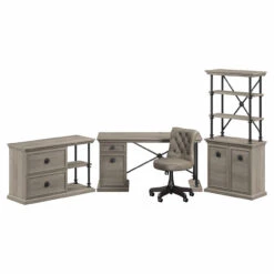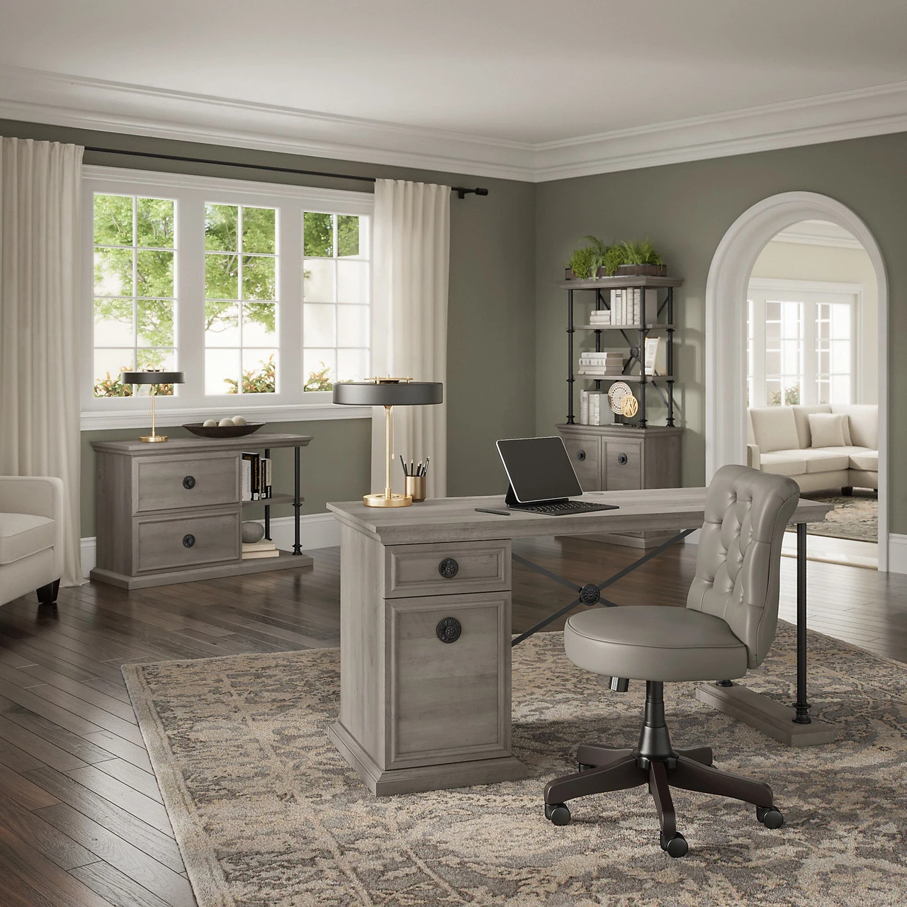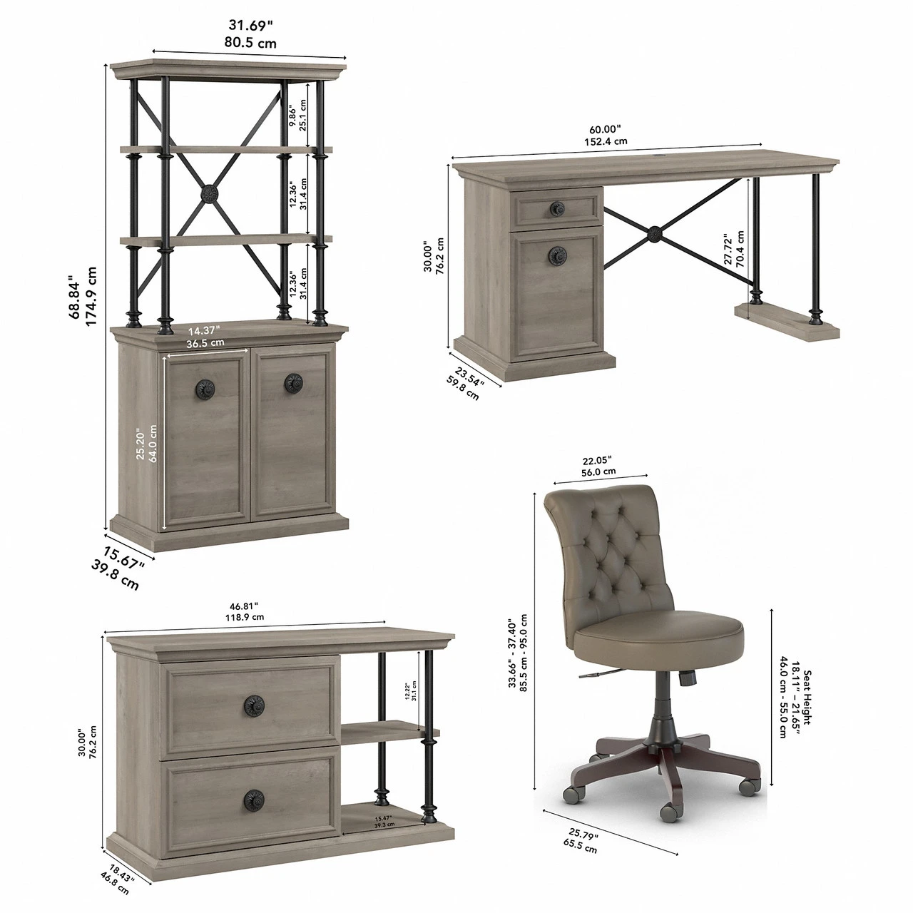 Bush Furniture Coliseum 60W Designer Desk and Chair Set with Lateral File Cabinet and Bookcase with Doors in Driftwood Gray – CSM003DG