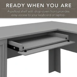 * L Shaped Desk with Keyboard Tray accepts coordinating 60W Hutch (sold separately) for additional storage and display space