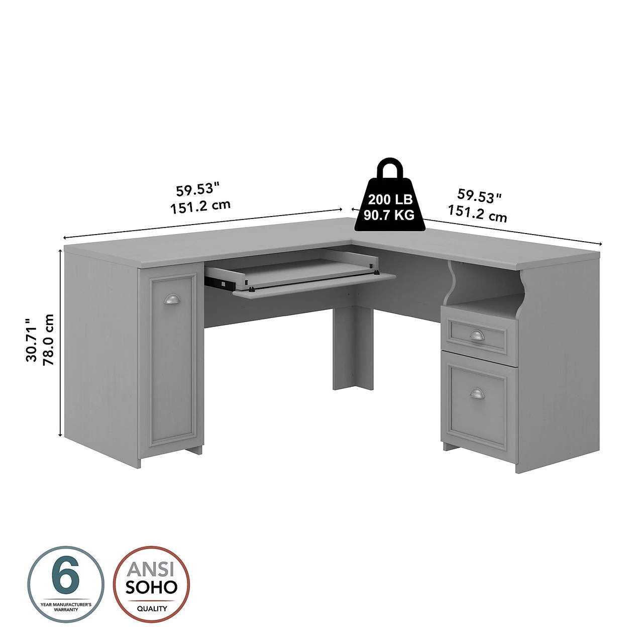 Bush Cabot Collection 60W L Shaped Desk with Drawers and Storage Cabinet Cape Cod Gray – WC53530-03K