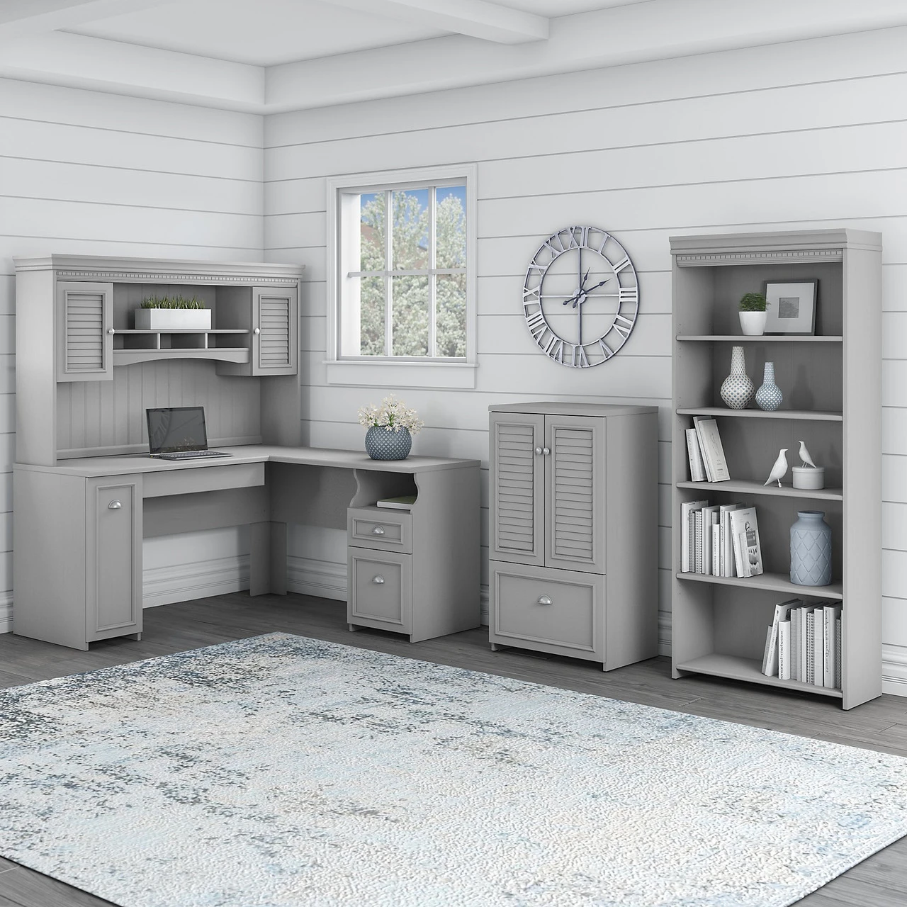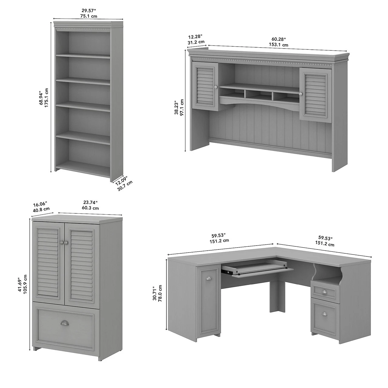 Bush Furniture Fairview 60W L Shaped Desk with Hutch, 5 Shelf Bookcase and Storage Cape Cod Gray – FV011CG