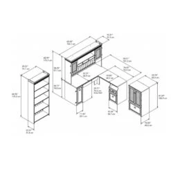 * 60W L Shaped Desk with Storage, 60W Hutch for L Shaped Desk, Tall 5 Shelf Bookcase, 2 Door Storage Cabinet with File Drawer
