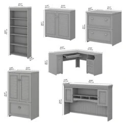 * Bundle includes: 60W L Shaped Desk with Storage, 60W Hutch for L Shaped Desk, 2 Drawer Lateral File Cabinet, Tall 5 Shelf Bookcase, Small Storage Cabinet with Doors, 2 Door Storage Cabinet with File Drawer