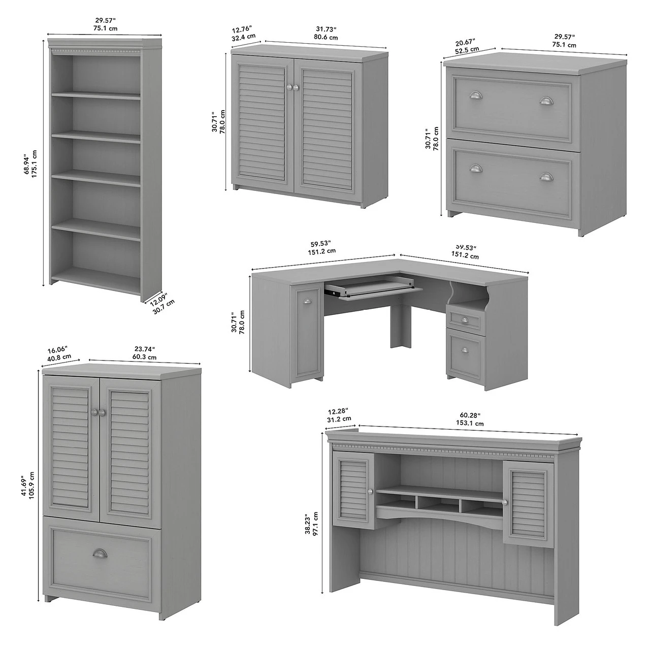 Bush Furniture Fairview 60W L Shaped Desk with Hutch, Bookcase, Storage, and File Cabinets Cape Cod Gray – FV014CG