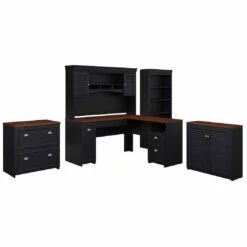Bush Furniture Fairview 60W L Shaped Desk with Hutch, File Cabinet, Bookcase and Storage Antique Black – FV013AB