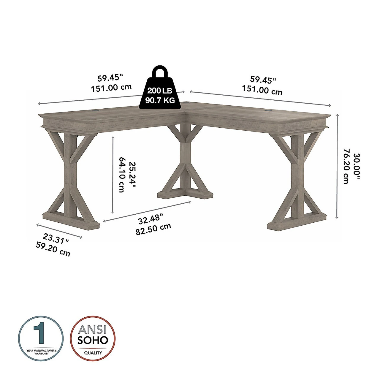 *Â Durable L Shaped Office Desk’s surface supports materials and equipment with a weight capacity of 200 pounds