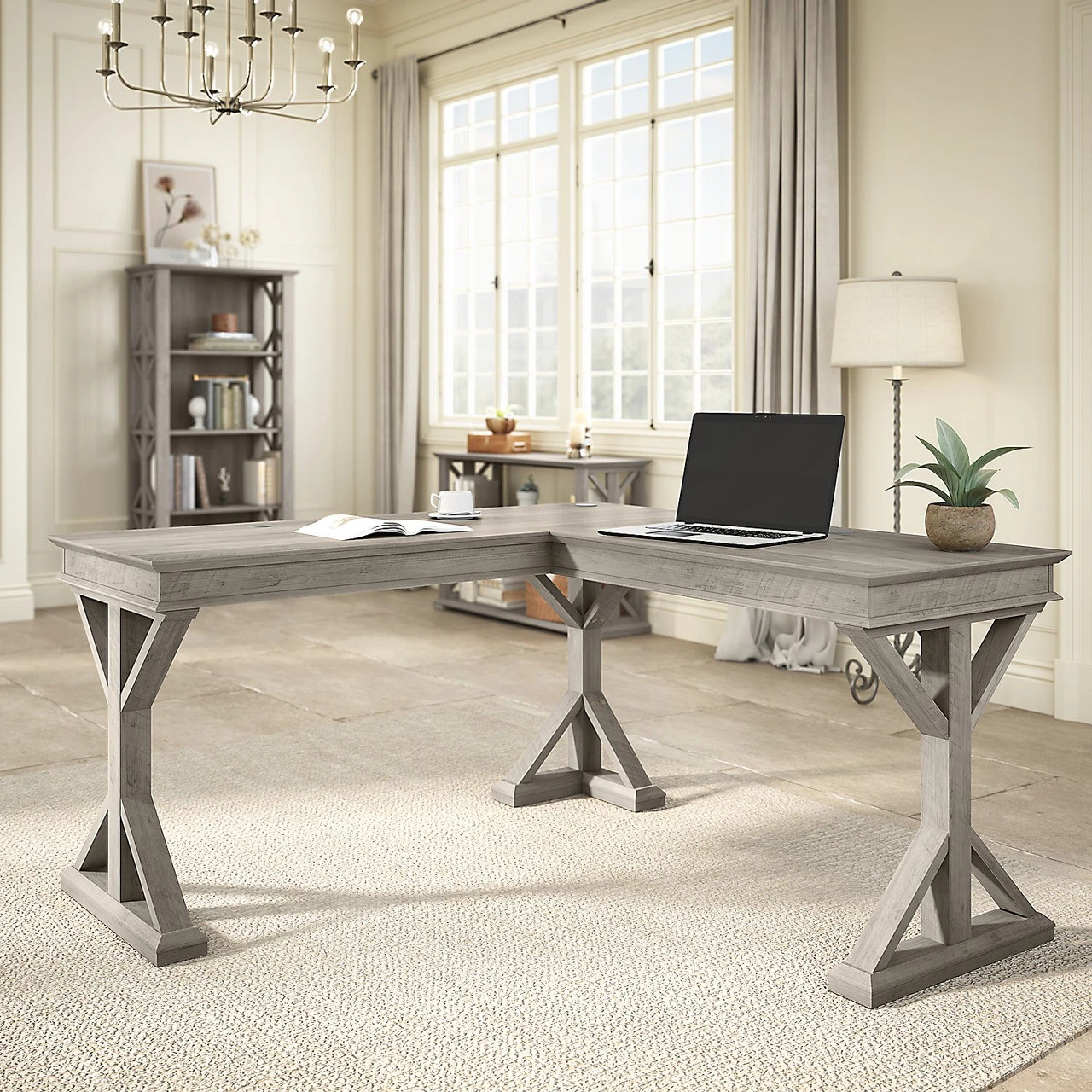 Bush Furniture Homestead 60″W L-Shaped Desk Driftwood Gray – HOD160DG-03K