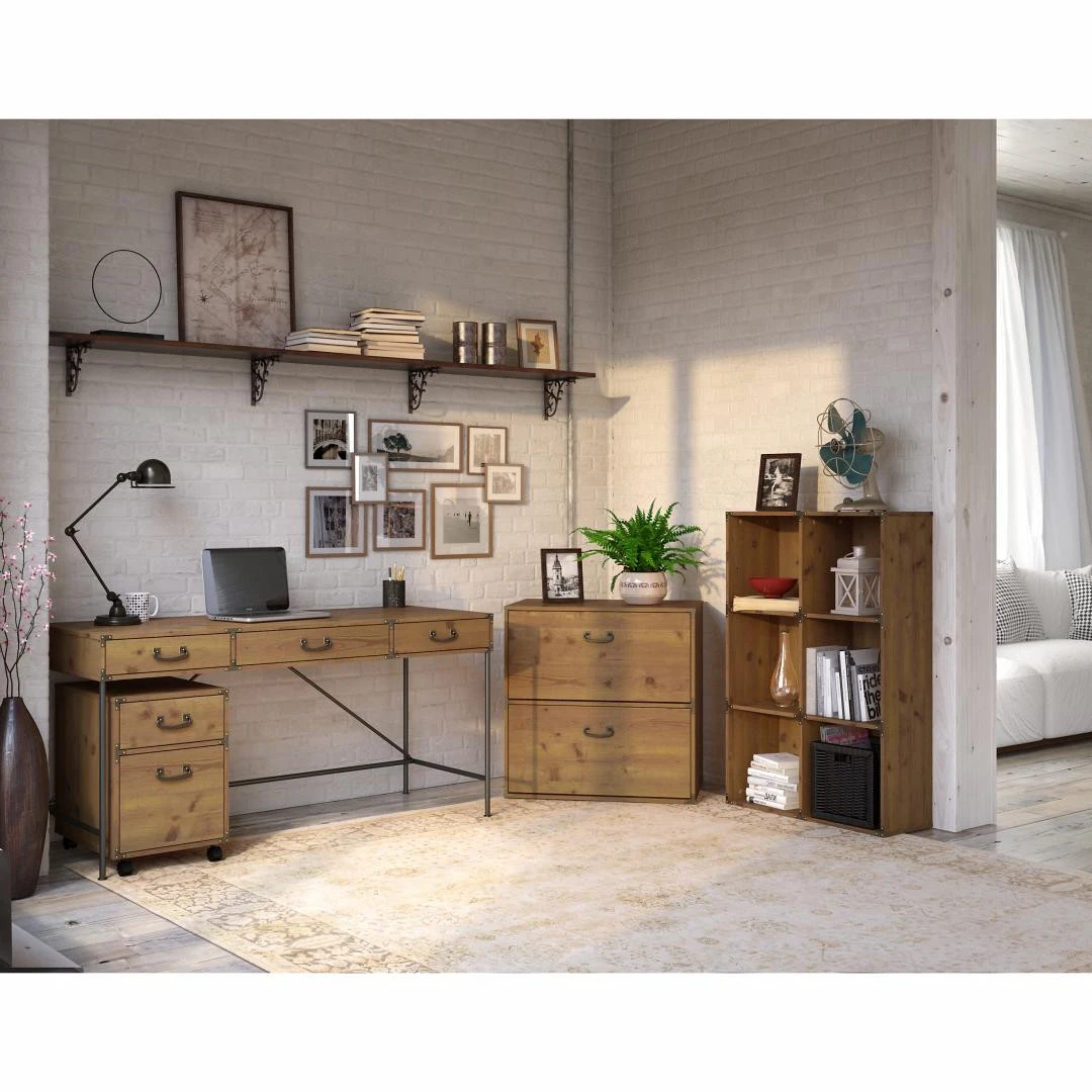 Bush Furniture Ironworks 60W Writing Desk with Drawers Vintage Golden Pine – KI50105-03