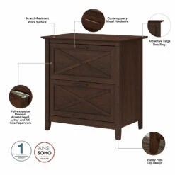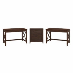 Bush Furniture Key West 2 Person Desk Set with Lateral File Cabinet Bing Cherry – KWS047BC