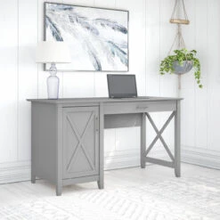 Bush Furniture Key West 54W Computer Desk with Keyboard Tray and Storage in Cape Cod Gray – KWD154CG-03