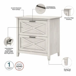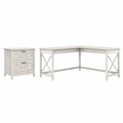 Bush Furniture Key West 60W L Shaped Desk with 2 Drawer Lateral File Cabinet in Linen White Oak – KWS014LW
